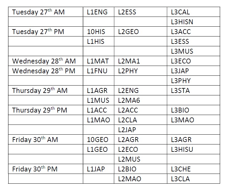 Benchmark exams continue on Tuesday 27th September.